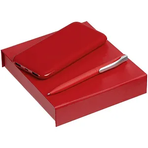 Набор подарочный SILENT-ZONE: бизнес-блокнот, ручка, наушники, коробка, стружка, бело-красный
