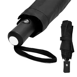 Полуавтоматический. Такой зонт открывается с кнопки, а вот закрывается — вручную.