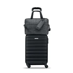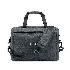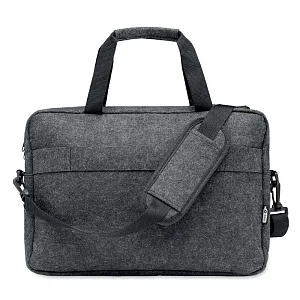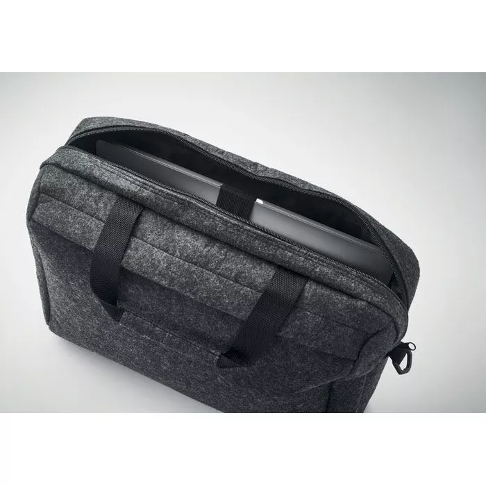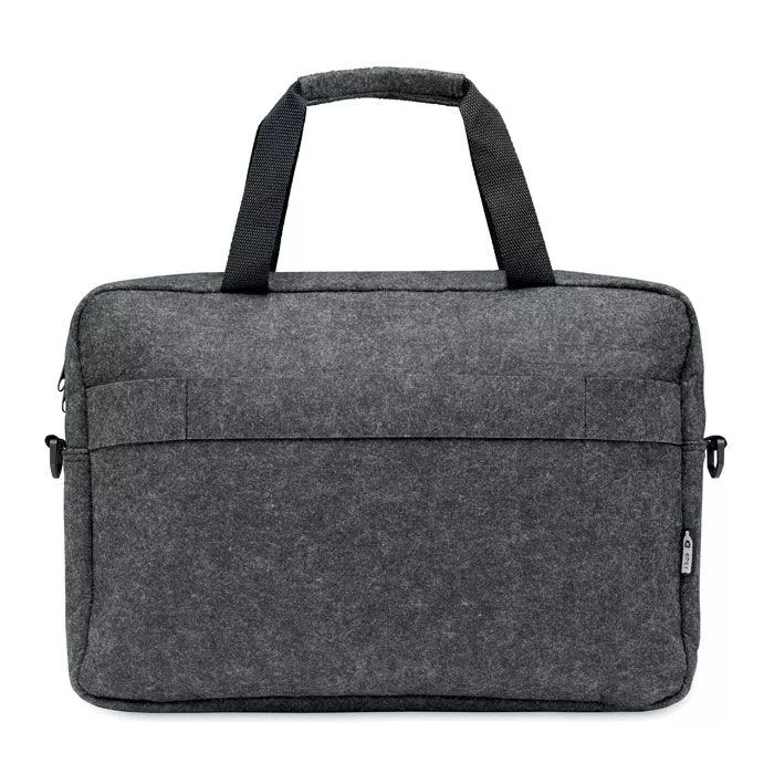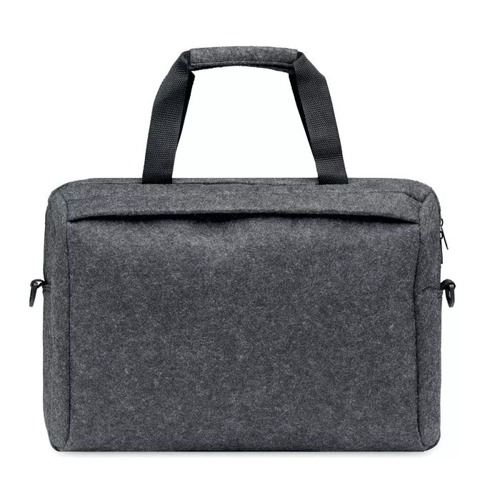 Сумка для ноутбука 15 дюймов из войлока RPET с одним основным внутренним отделением и одним передним карманом на молнии. Съемный регулируемый плечевой ремень. Держатель для тележки на обратной стороне.