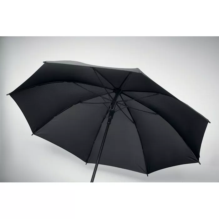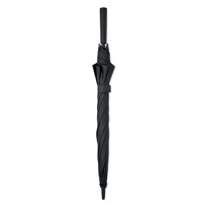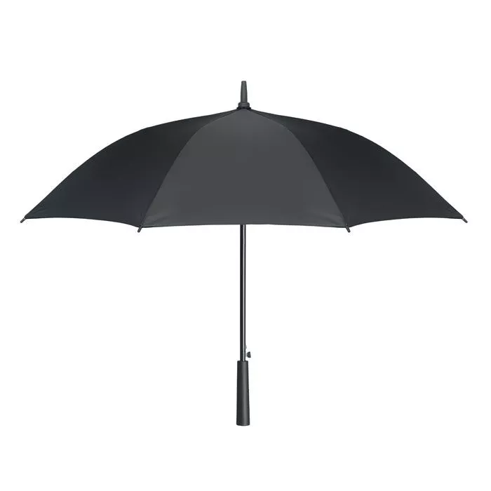 23-дюймовый ветрозащитный зонт с автоматическим раскрытием из полиэстера 190T с каркасом из стекловолокна, черным покрытием стержня и пластиковыми наконечниками. Ручка из ABS с резиновым покрытием. Ручная застежка.