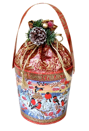 №5 ВЕДЕРКО СНЕГИРИ С ШИШКОЙ 850 грамм новогодний подарок классический