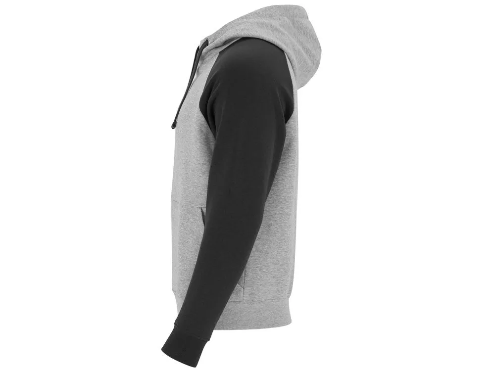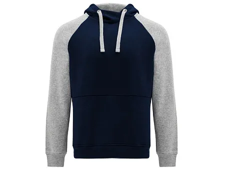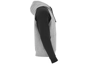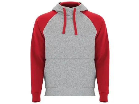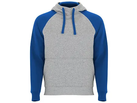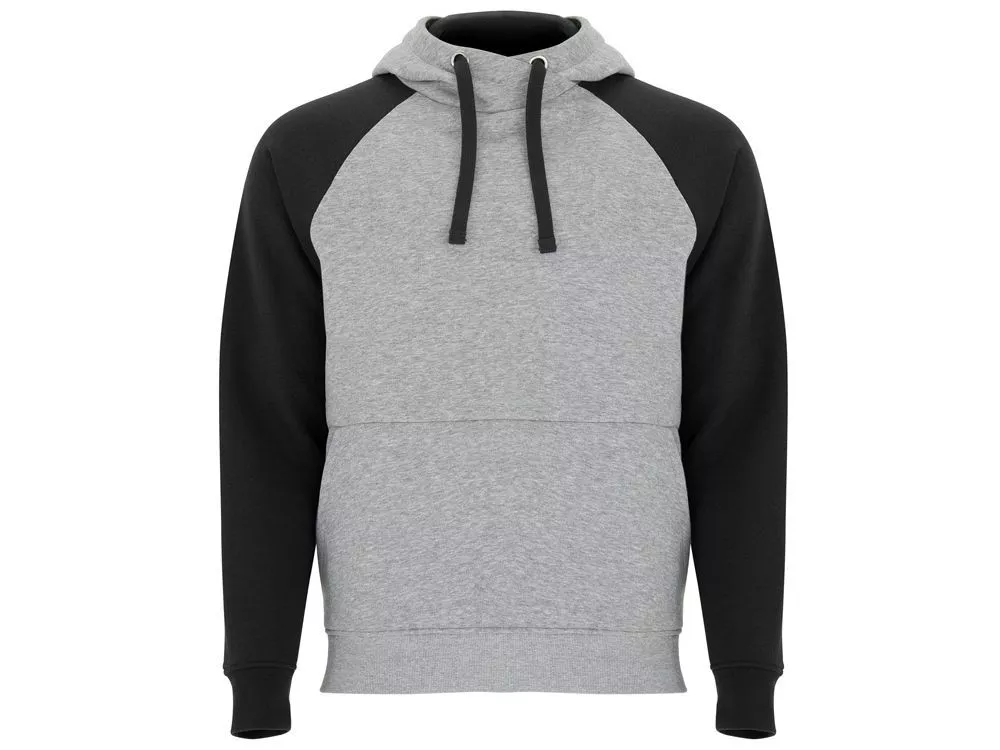 Худи с контрастным рукавом реглан. Капюшон с запахом, с контрастной подкладкой и шнурком. На полочке карман кенгуру. Манжеты рукавов и низ изделия из риба 1х1. В ассортименте представлена аналогичная детская модель Badet