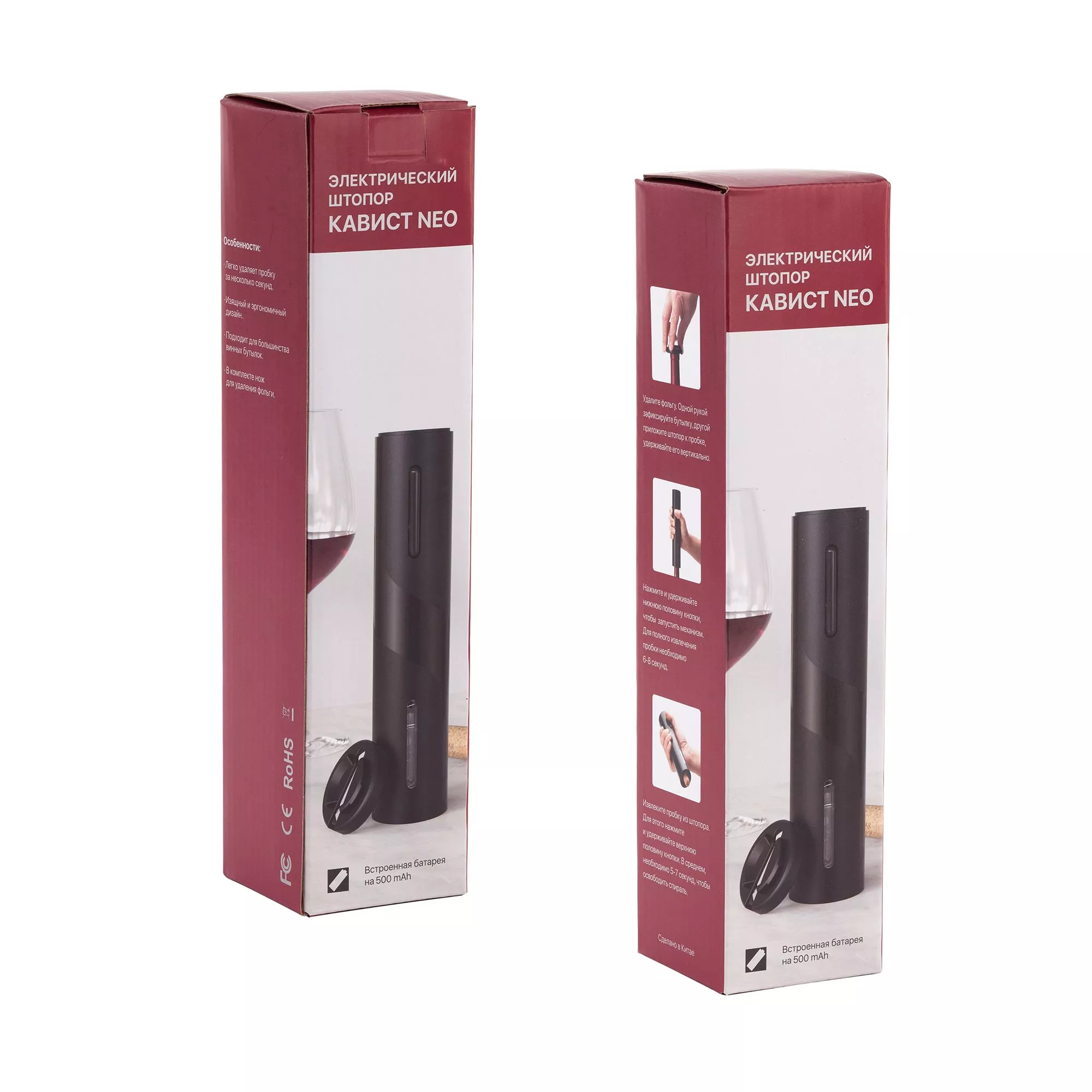 Электрический штопор «Кавист neo» - апгрейд хита 4654 "Кавист", работает от встроенного аккумулятора на 500 mAh (ресурс 500 циклов). Полной зарядки хватает для открытия более 30 бутылок. Красная подсветка-индикатор активна при зарядке батареи и в процессе работы штопора.