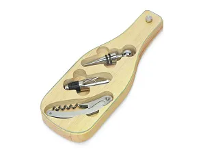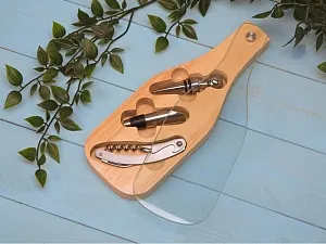 Набор аксессуаров для вина от Master of Wine выполнен в виде футляра из дерева со стеклянной крышкой с разместившимися внутри штопором, пробкой и аэратором. Футляр — в форме бутылки вина, что позволяет обыграть тему благородного напитка при помощи нанесения. Прозрачная стеклянная крышка может быть полностью запечатана по желанию клиента, который наверняка оценит столь большое поле для нанесения. Кроме того, крышка может быть использована для сервировки на ней сыров и закусок или для их нарезки. Деревянная часть футляра имеет три вырезанные ниши под каждое из приспособлений для вина, дополненные выемками под пальцы для удобного извлечения. Набор поставляется в разобранном виде для удобства нанесения. Гравировка (оптоволоконный лазер) (Без чернения) на данный товар осуществляется бесплатно. Оплачивается только настройка оборудования в размере 950 рублей на весь тираж.