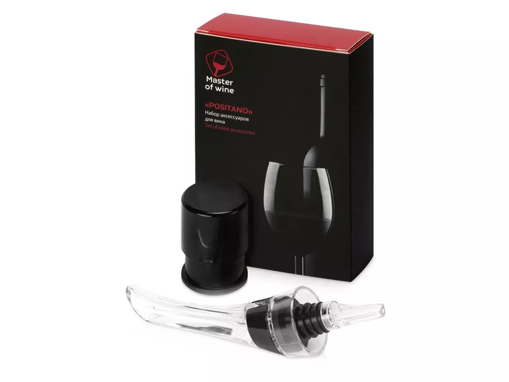 Набор аксессуаров для вина Positano бренда Master of Wine состоит из вакуумной пробки и аэратора. Оба приспособления помогут вам насладиться вином — раскроет вкус и насытит вино кислородом аэратор, а сохранит свежесть напитка вакуумная пробка. Аэратор надевается на горлышко бутылки, после чего вино разливается по бокалам. Проходя сквозь аэратор, вино насыщается кислородом, что улучшает его вкус, а еще с этим приспособлением вам будет гораздо легче аккуратно разлить вино из бутылки, не пролив и капельки. Силиконовое кольцо обеспечивает плотную и надежную посадку на горлышке, а насыщение воздухом происходит через два отверстия на корпусе. Прозрачное акриловое стекло делает разлив вина еще и красивым, позволяя наблюдать за потоком благородного напитка. Пробка пригодится в тех случаях, когда бутылка еще полна, а пить уже не хочется. Сохраните вино до 30 дней, закупорив его вакуумной пробкой — для этого просто наденьте на горлышко приспособление и нажмите несколько раз на него. Готово! Набор упакован в коробку с вырубленным ложементом, который представит подарок в самом достойном виде адресату, а поверх коробки предусмотрен шубер. - безопасные для человека материалы: силикон, АБС пластик, акриловое стекло - пробку и аэратор просто использовать - подарочная коробка с шубером решает вопрос упаковки Тампопечать (1 цвет (цветные изделия)) на данный товар осуществляется бесплатно. Оплачивается только настройка оборудования в размере 3600 рублей на весь тираж.