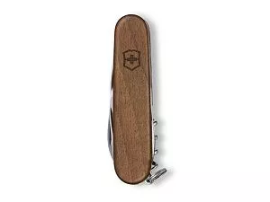 Швейцарский армейский нож SPARTAN WOOD имеет 10 функций: 1. Большое лезвие 2. Малое лезвие 3. Штопор 4. Консервный нож с: 5. – Малой отвёрткой 6. Открывалка для бутылок с: 7. – Отвёрткой 8. – Инструментом для снятия изоляции 9. Шило, кернер 10. Кольцо для ключей