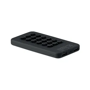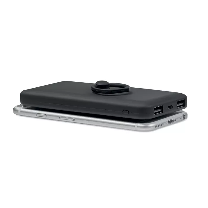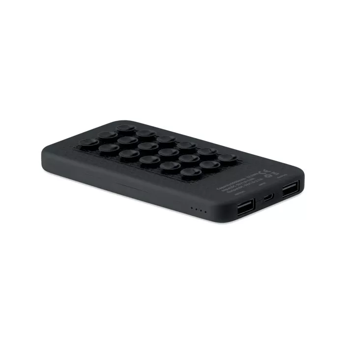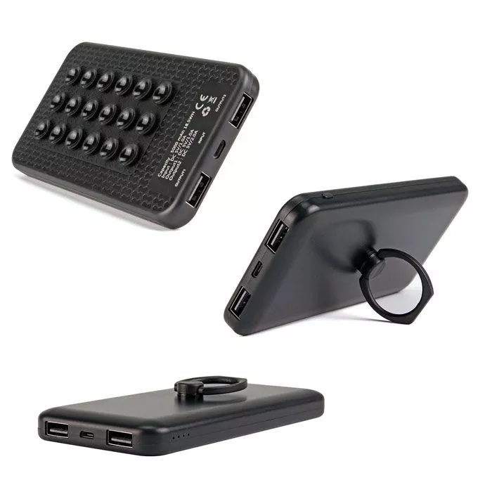 Аккумулятор на 5000 мАч со встроенным кабелем. Объем для использования смартфона, мощность на выходе DC5V / 1A. Заряженное устройство подсвечивает логотип. Имеет присоски и держатель- кольцо. Разъем тип C.