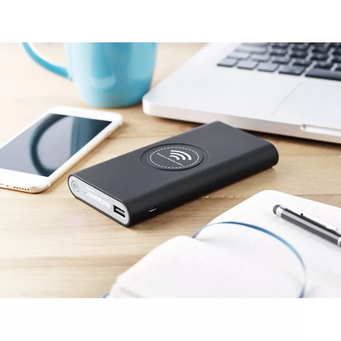 Беспроводной аккумулятор 8000 мАч из пластика ABS с прорезиненной отделкой. Положите на него смартфон и просто дайте ему зарядиться. Включает разъем типа C.
