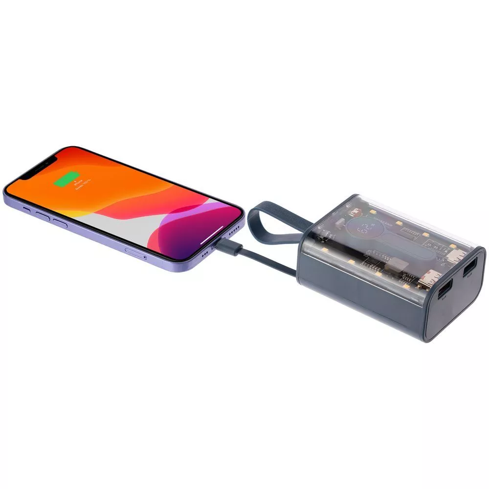 – Выход USB-A QC (оранжевый): 5 В, 3 A; 9 В, 2 A/12 В, 1,5 A, USB-A (черный), Type-C, Lightning (кабели): 5В, 2А - Время зарядки: до 3 часов при использовании зарядного устройства с разъемом Type-C и поддержкой функции QC 3.0