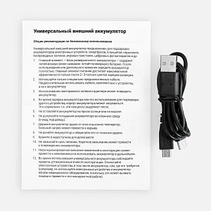 Компактный аккумулятор c функцией беспроводного заряда и тремя типами зарядных портов: Apple Lightning, USB Type-C и micro USB. Позволит весь день пользоваться и планшетом на iOS, Android или Windows, и смартфоном. Может заряжаться как прилагаемым зарядным кабелем, так и штатным кабелем мобильного устройства.