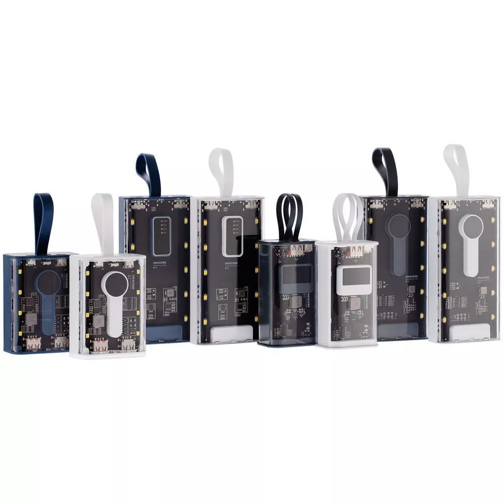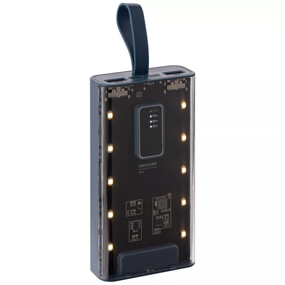 Необычный дизайн коллекции Uniscend Trellis выгодно выделяет новую серию устройств из прозаичного ряда внешних аккумуляторов. Они не поддерживают беспроводную зарядку, зато точно привлекают внимание: под прозрачной панелью хорошо видны электронная начинка и индикатор оставшегося в аккумуляторе заряда, а мягкая подсветка светодиодами теплого оттенка логичным образом дополняет технологичный внешний вид.
