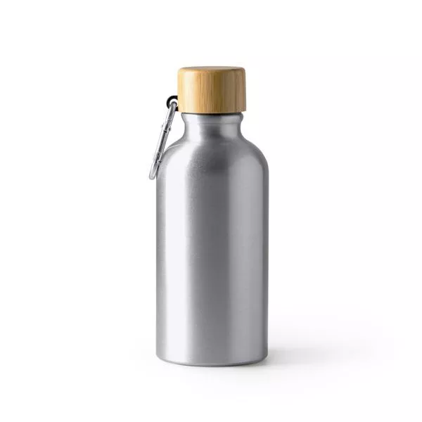 Алюминиевая бутылка с карабином и бамбуковой крышкой. Емкость 400 мл.
