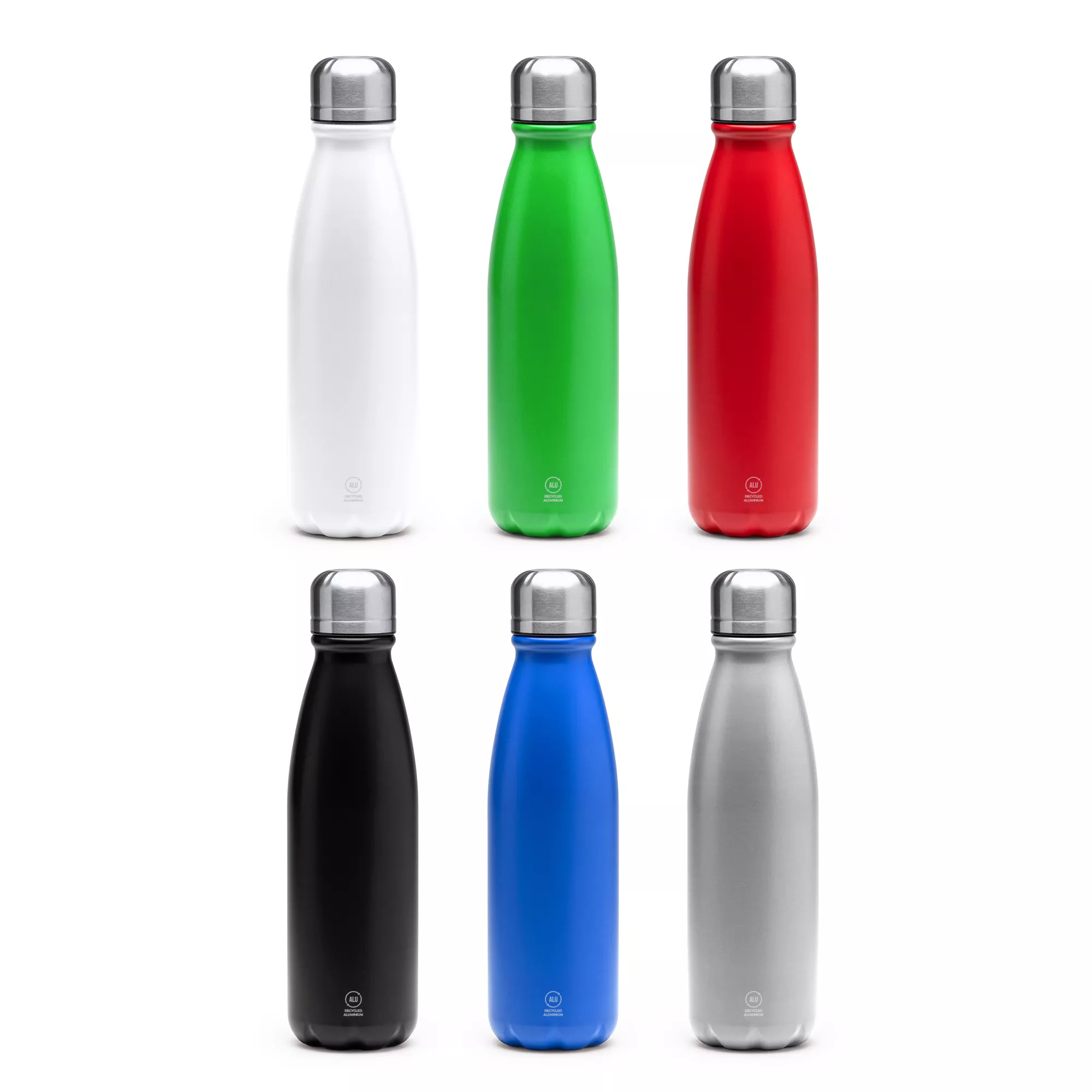 Бутылка из переработанного алюминия с простыми стенками идеально подходит для ежедневного использования. Емкость 550 мл.