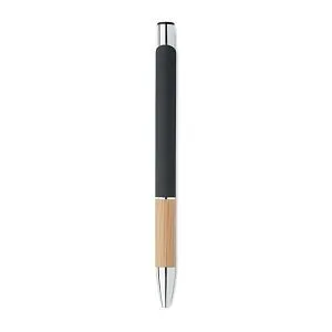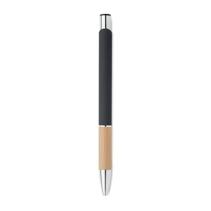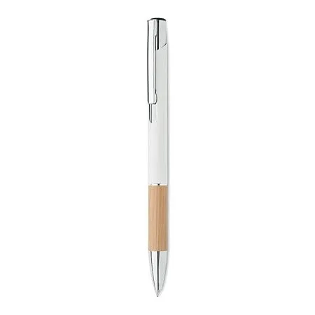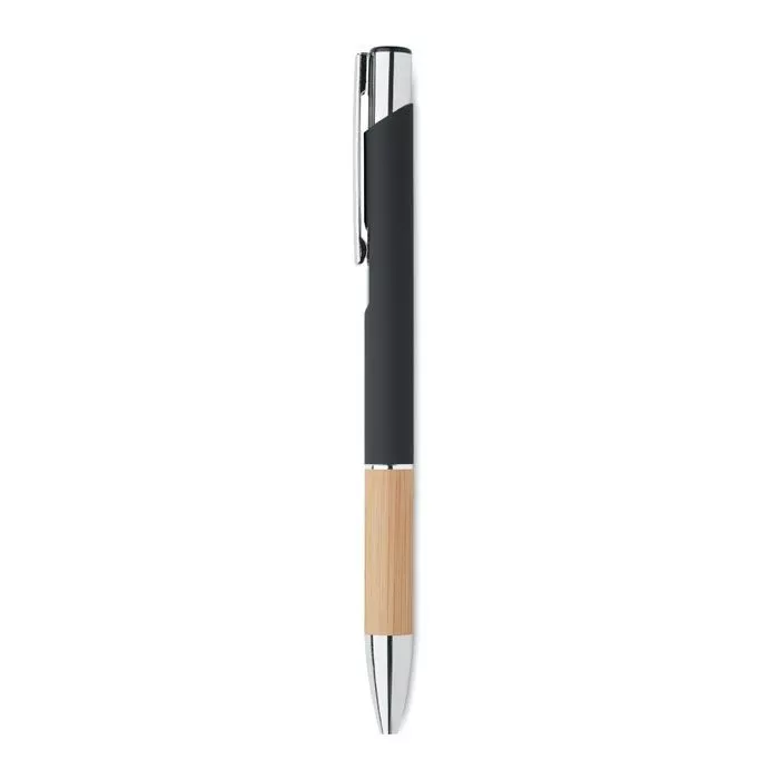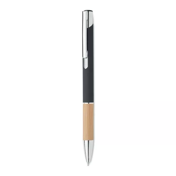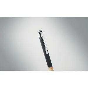 Кнопочная ручка из алюминия с бамбуковым стержнем. Синие чернила.