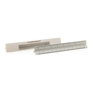 Алюминиевая линейка длиной 15 см с 5 различными масштабами (1:20; 1:25; 1:50; 1:75; 1:100). Компактный размер позволяет легко взять ее с собой.