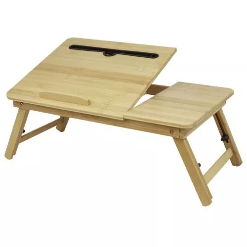 Складной и регулируемый стол из бамбука. Универсальный стол позволяет регулировать не только высоту, но и угол наклона для чтения книг, работы на ноутбуке, просмотра фильмов на планшете или приема пищи. На фиксируемом боковом столике можно разместить чашку, компьютерную мышь и/или ноутбук. Идеально подходит для использования на диване, в саду, в постели, на балконе или в парке. Бамбук используется из устойчивых, экологически и социально ответственных источников. Складной стол в самом высоком положении имеет размеры 68,5 x 34 x 48 см. Поставляется с инструкцией по эксплуатации и упакован в подарочную коробку из переработанного картона размером 58 x 36 x 5,5 см.