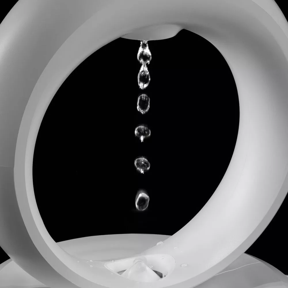 Благодаря специальной подсветке можно часами наблюдать, как капли воды, будто преодолевая гравитацию, поднимаются вверх, замирают в воздухе или движутся вниз медленнее, чем это предписывается законом всемирного тяготения.