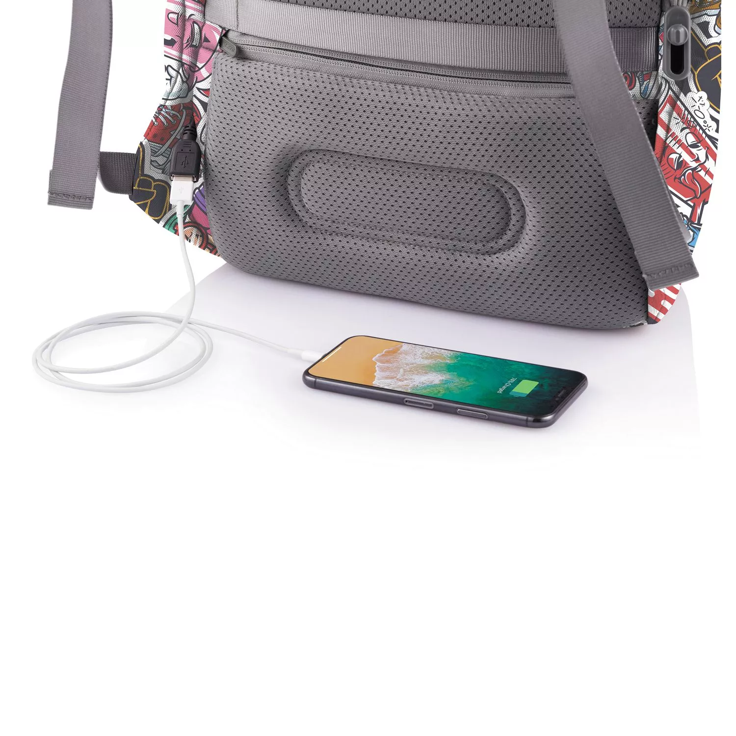 Специальный выпуск знаменитого антикражного рюкзака Bobby Soft, созданный совместно с дизайнерами и художниками со всего мира. Для университета, школы, работы или путешествия — рюкзак Bobby Soft подойдет для любой задачи! Знаменитый антикражный дизайн Bobby с потайными карманами, RFID-защитой и скрытыми молниями теперь в новом исполнении с дополнительным фиксатором на основном отделении. В рюкзак легко поместится все самое необходимое, для ноутбука 15.6" предусмотрен специальный мягкий отсек. Несколько внутренних карманов и брелок-лента для ключей. Верхняя часть рюкзака расширяется, обеспечивая дополнительную вместимость. Модель выполнена из водоотталкивающего материала, для зарядки предусмотрен USB-порт. Рюкзак сделан из RPET с добавлением индикатора AWARE™. С AWARE™ вы можете быть уверены в подлинности переработанных материалов изделия и экологичности производства. При создании каждого рюкзака Bobby Soft мы сэкономили 22 литра воды и переработали 37 пластиковых бутылок. Зарегистрированный дизайн®
