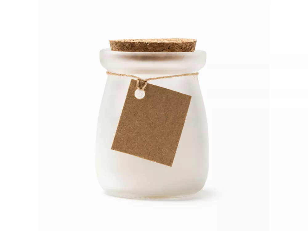 Ароматическая свеча в подсвечнике с пробкой. Аромат ванили. В комплект входит крафт-ярлык для нанесения.