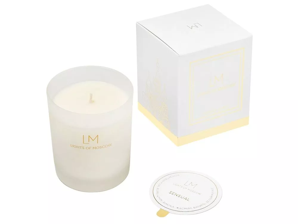 Коллекция аромасвечей Exclusive является уникальной не только из-за ароматов коллекции, но и благодаря тщательно разработанному дизайну упаковки, которая является напоминанием о том, что бренд Lights of Moscow - это ручное российское производство в самом центре Москвы. Белая коробка оформлена ярким золотым фольгированием, на левой стороне которой изображен Храм Василия Блаженного - одна из главных достопримечательностей на Красной площади в Москве. Пудровый, цветочный аромат во главе с болгарской розой, фиалкой и жасмином дарят нежное, тонкое, но одновременно роскошное сочетание. Элегантный дуэт дополняют ноты боярышника, ванили и белого мускуса. Ноты: болгарская роза, боярышник, фиалка, жасмин, ваниль и белый мускус Комплектность: - Свеча в окрашенном стакане спечатью на стакане - 1 шт. - Подарочная эксклюзивная коробка с ложементом и репсовой лентой - 1 шт. - Пыльник - 1 шт. Условия хранения: — Свечи, аромасаше, аромадиффузоры, SPA-наборы следует хранить при температуре +18…+24 °C, вдали от источников тепла, сквозняков и прямых солнечных лучей. — Рекомендуемая влажность — не более 50%. — Избегайте длительного воздействия яркого света.