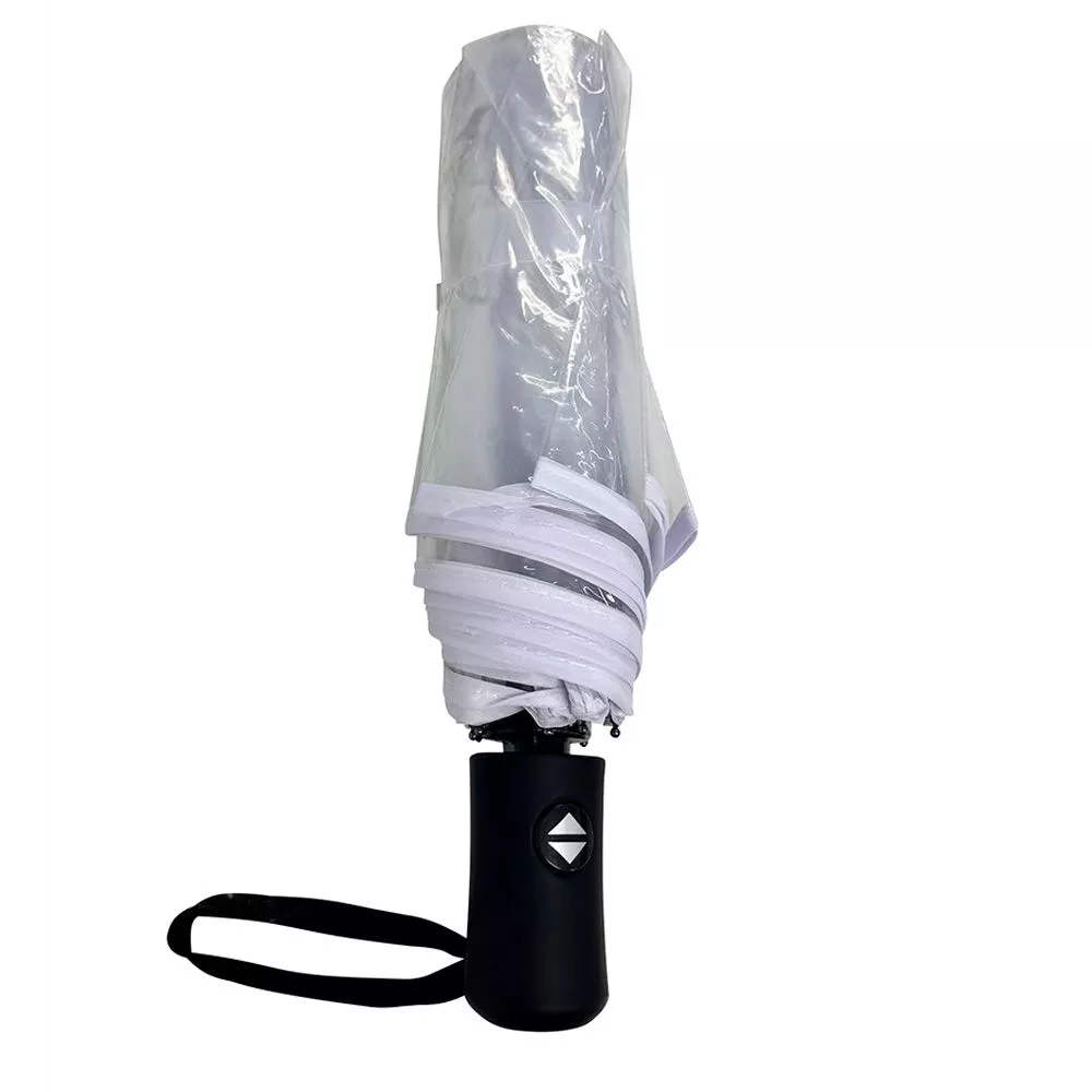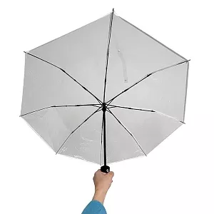 Полностью автоматический зонт Transparent – воплощение надежности и долговечности. Ветрозащитная функция реализована при помощи спиц из стекловолокна. Материал купола – POE. Зонт упакован в чехол.
