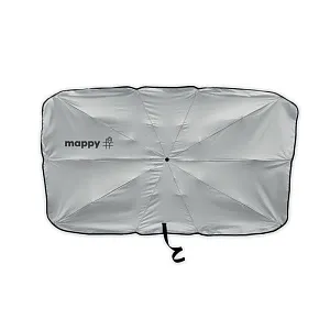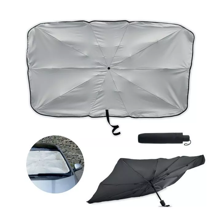 Автомобильный зонт с солнцезащитной тенью на лобовом стекле из эпонжа 190T с односторонней серебряной подкладкой UV (SPF50). Ручное открытие/закрытие.