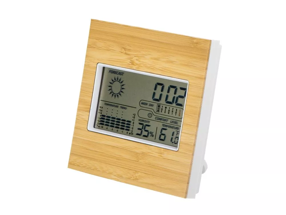 Бамбуковая метеостанция станет удобным и функциональным деловым подарком. Благодаря встроенным датчикам метеостанция показывает температуру воздуха, уровень влажности, дату и время. Также можно настроить будильник. Гравировка (CO2 лазер) (Без чернения) на данный товар осуществляется бесплатно. Оплачивается только настройка оборудования в размере 1000 рублей на весь тираж.
