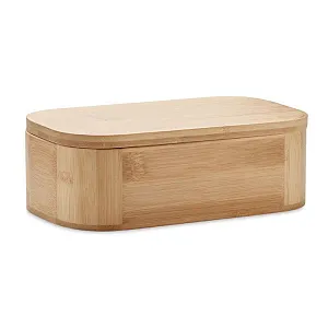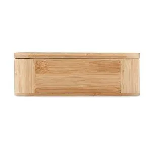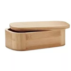Бамбуковый ланч-бокс со съемным разделителем и прикрепляемым эластичным нейлоновым ремешком. Только для сухих продуктов. Вместимость: 1000 мл.