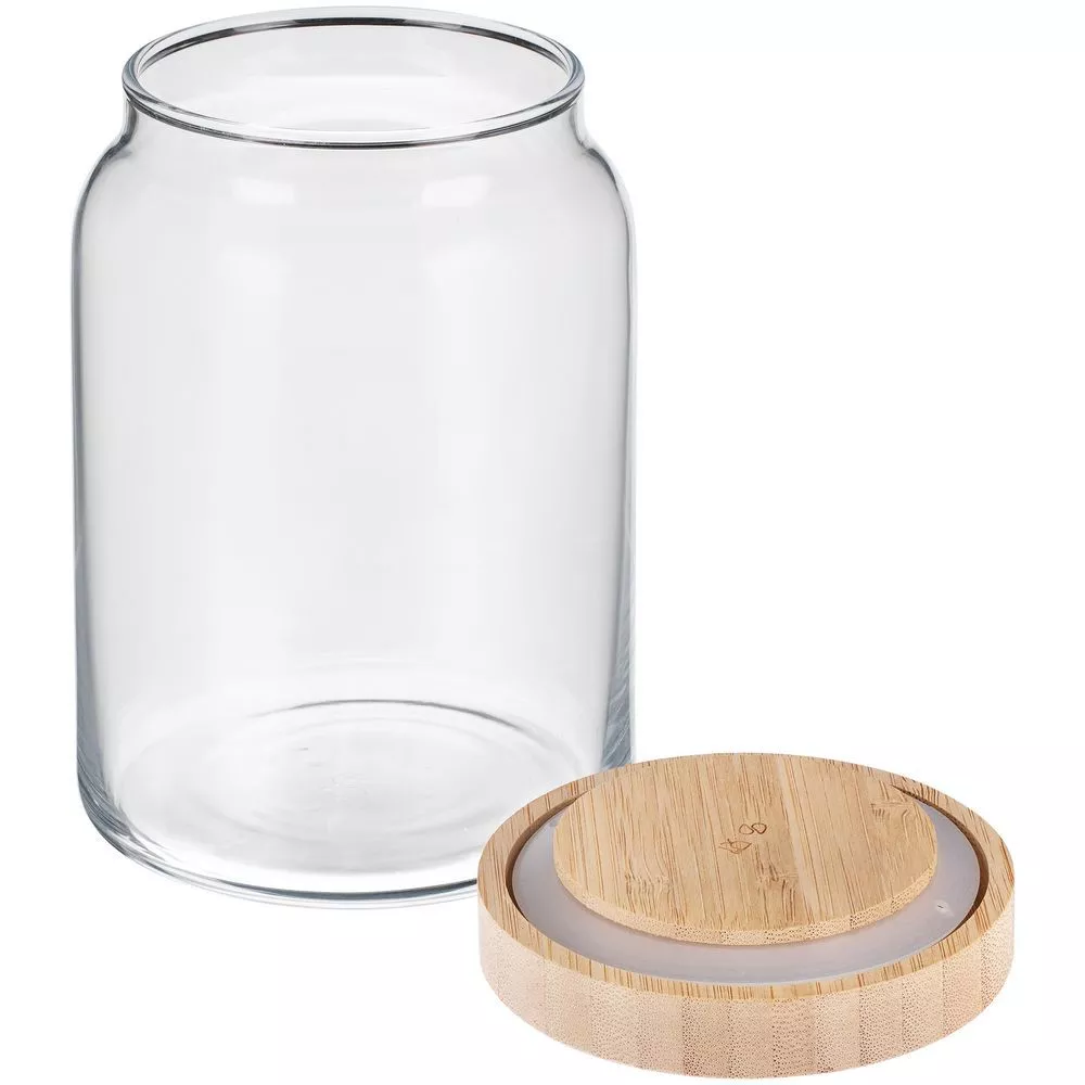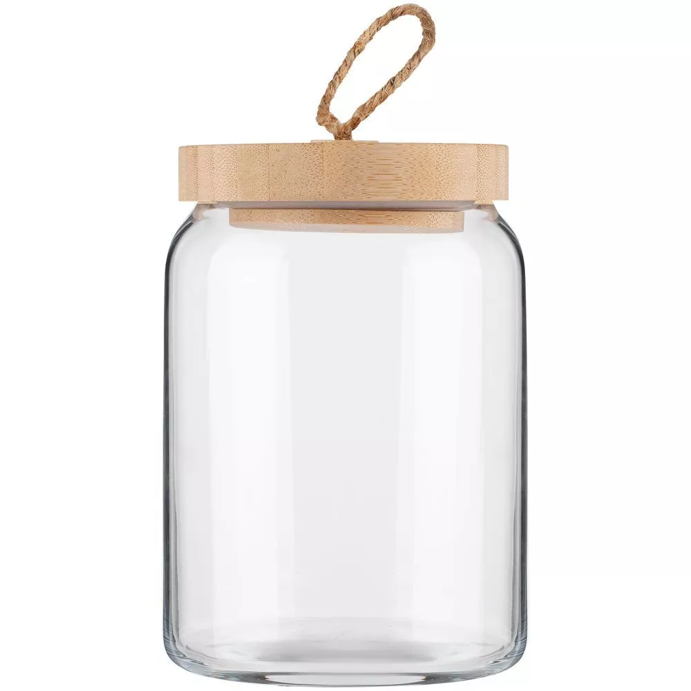 Банка с крышкой из натурального бамбука с привлекательным и экологичным дизайном. Крышка закрывается герметично, надежно защищая содержимое от влаги и воздух и создавая идеальные условия для хранения.Емкость 860 мл.