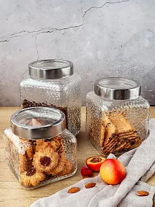 Банка предназначена для хранения сухих сыпучих продуктов, круп, сахара, кофе, чая, печенья, макаронных изделий, специй. Банка с плотно закручивающейся крышкой защитит содержимое от влаги, запаха и насекомых.