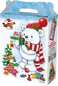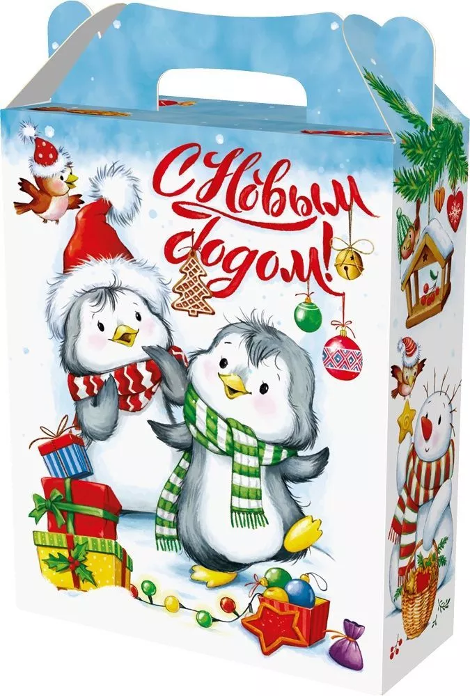 Это праздничная упаковка, стилизованная под зимнюю тематику. Упаковка отлично подходит в качестве подарка, создавая атмосферу праздника и веселья.