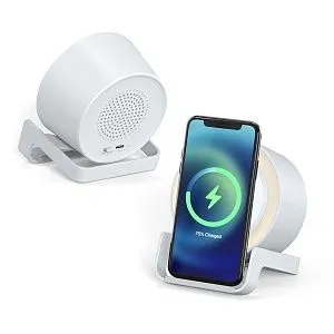 Удобная настольная музыкальная колонка U-Tone с функцией беспроводной зарядки аккумулятора мобильного телефона. Выходная мощность динамика 3W 4Ω, версия Bluetooth V5.0, рабочая дистанция ±10м, рабочая частота в переделах