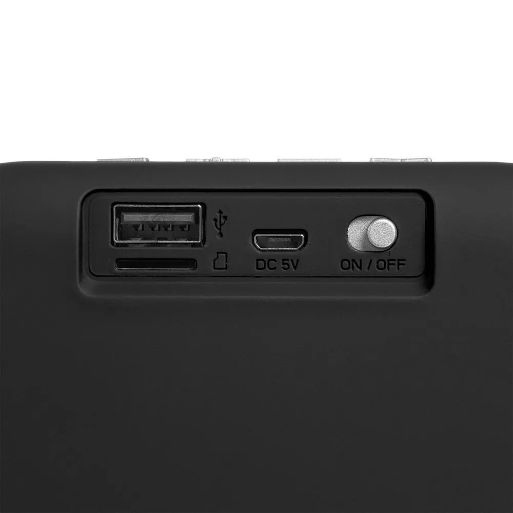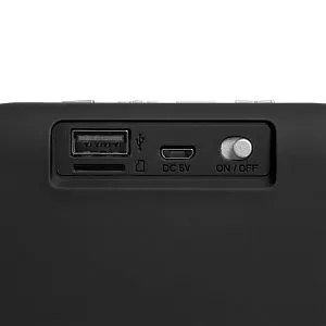 Колонка Borsetta умеет проигрывать музыку через Bluetooth, с USB-флешки, карты microSD и принимать радиоволны в FM-диапазоне. Благодаря дополнительному басовому излучателю колонка звучит объемно и сочно, а современный дизайн корпуса с покрытием софт-тач и фактурной акустической тканью не позволит ей остаться незамеченной.