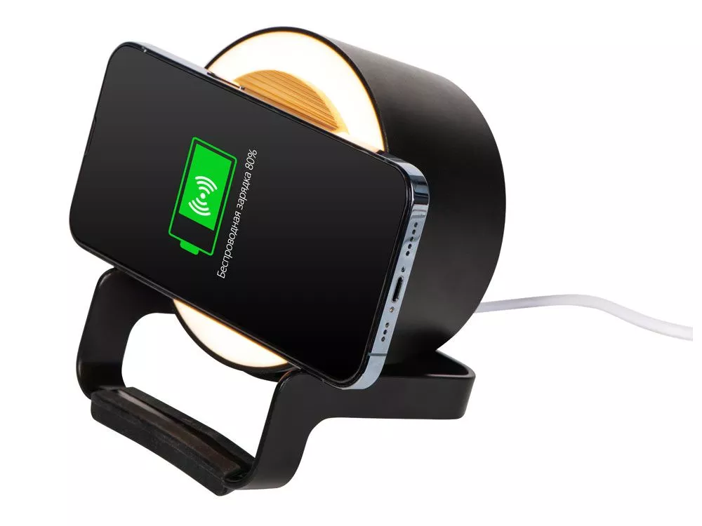 Беспроводная колонка Eclipse не только воспроизводит музыку, но и заряжает Qi-совместимые устройства, которые можно комфортно разместить на специальной подставке. Идеальный вариант для экономии места на рабочем месте или прикроватной тумбочке, кроме того, колонка подсвечивается, что помогает создать нужную вам атмосферу. - подходит для круговой печати корпуса, что поможет создать стильное нанесение - 4 режима подсветки - лаконичный силуэт колонки позволяет вписать ее в любой интерьер и сочетать с любыми логотипами - беспроводная зарядка до 10 Вт Qi-совместимых устройств с горизонтальным и вертикальным размещением - мощный динамик 5 Вт - фронтальная панель из натурального бамбука Гравировка (CO2 лазер) (Без чернения) на данный товар осуществляется бесплатно. Оплачивается только настройка оборудования в размере 950 рублей на весь тираж.