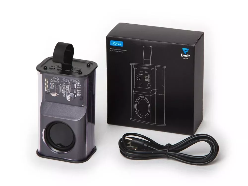 Беспроводная TWS колонка Sona c RGB подсветкой и опцией TWS позволит объединить колонки в пару и наслаждаться не только качественным звуком, но и приятным освещением. Чтобы изменить режим подсветки - нажмите и удерживайте в течение пары секунд кнопку М. Первый режим подсветки - ритмичный, колонка будет мигать разными светами в ритм музыки. Для переключения режима Bluetooth и радио нажимайте кнопку без удерживания. Колонка может работать от 3 до 5 часов на 1 заряде. Силиконовый держатель поможет подвесить колонку на карабин и закрепить на любой сумке, не занимая места внутри. Корпус выполнен из прозрачного пластика. Поставляется в фирменной упаковке. • TWS для стереофонического звука • 4 Режима подсветки • Ритмичная подсветка • Прозрачный корпус • Воспроизведение по Bluetooth, а также SD-карты Тампопечать (1 цвет (цветные изделия)) на данный товар осуществляется бесплатно. Оплачивается только настройка оборудования в размере 4000 рублей на весь тираж.
