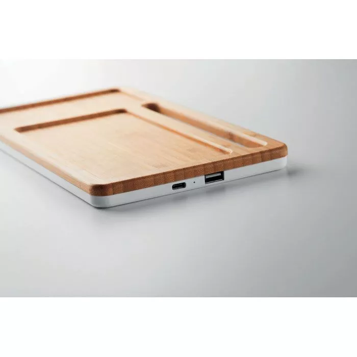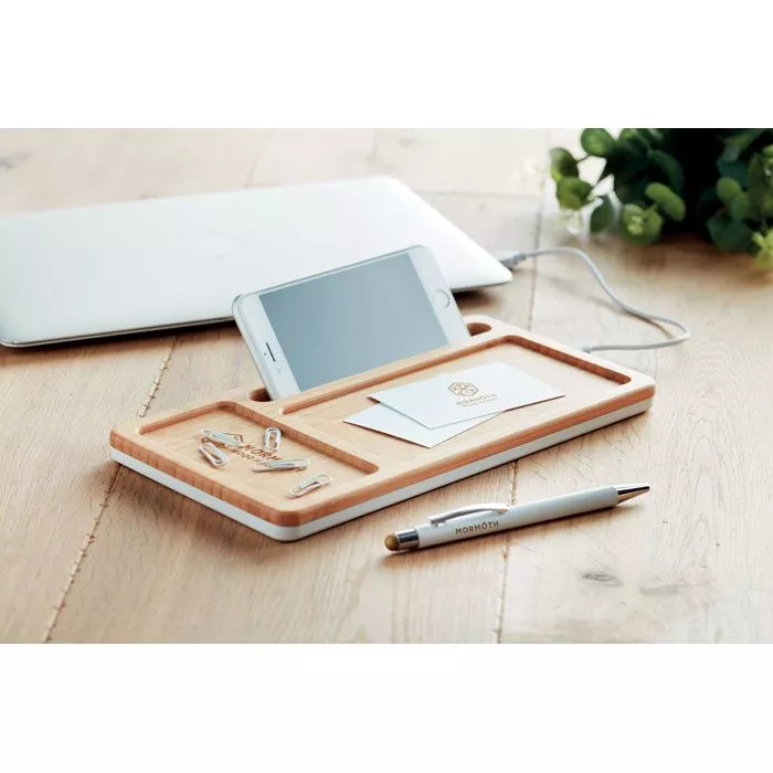 Док станция настольная из бамбука. Есть USB хаб и подставка / держатель для смартфона. Выход USB DC5V / 1A. Беспроводной выход: DC5V / 1A. Совместима с новейшими андроидами, iPhone® 8, X и новее. Кабель тип С в комплекте.