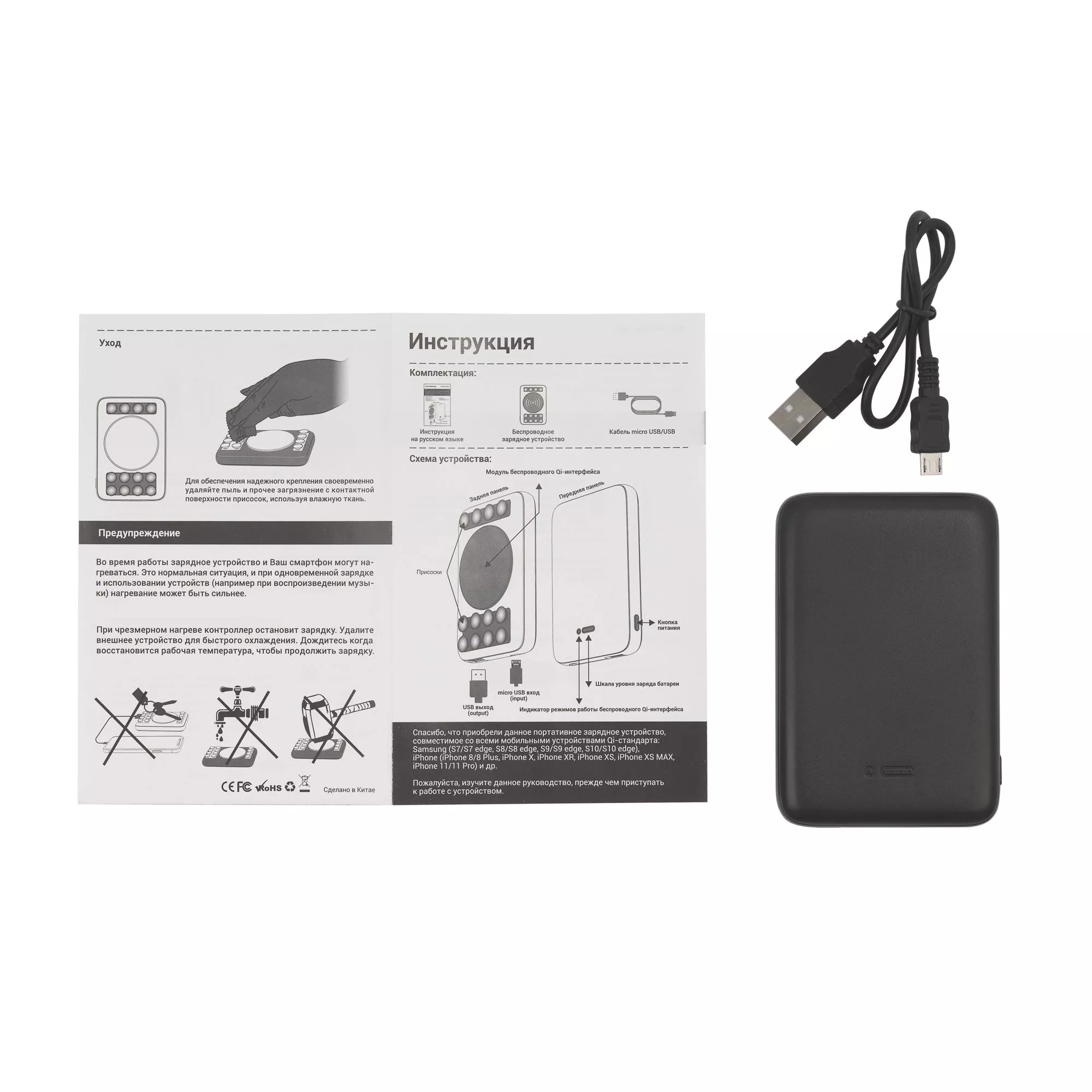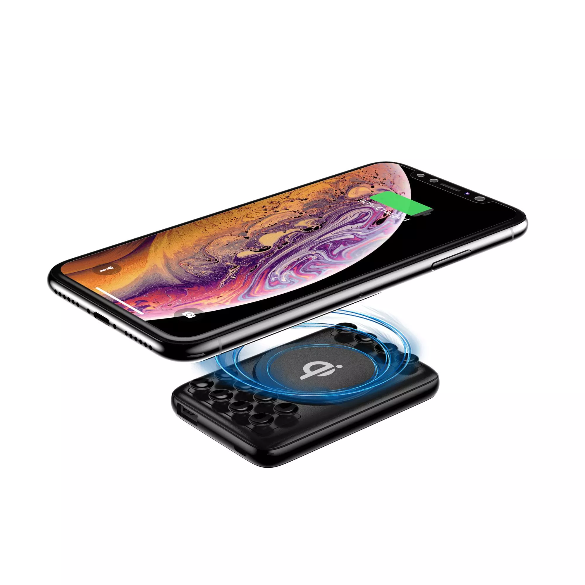 Компактное беспроводное зарядное устройство емкостью 5 000 mAh легко фиксируется на задней панели мобильного телефона с помощью присосок. При беспроводном/проводном соединении аккумулятор не закрывает обзор основной камеры (на большинстве современных моделей) - таким образом сохраняется возможность снимать фото/видео во время подзарядки. Зарядку можно остановить принудительно, выключив аккумулятор двойным нажатием на кнопку питания. При этом зарядное устройство не обязательно откреплять от смартфона. Когда вновь потребуется зарядка, достаточно будет нажать на кнопку питания.