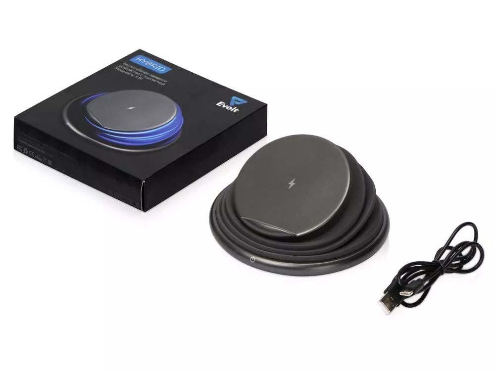 Hybrid - это беспроводная зарядная станция и ночник в одном устройстве. Ночник имеет 4 цвета и 2 режима подсветки на выбор, а также - регулируемое положение. Гаджет изготовлен из пластика, светящаяся часть - из силикона. Актуальный подарок для ценителей необычных гаджетов.