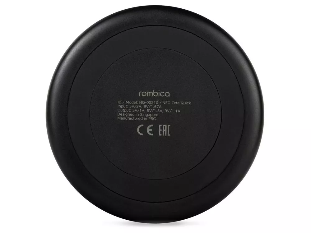 Беспроводное зарядное устройство Rombica NEO Zeta Quick. • Совместимо с устройствами, изготовленными по стандарту Qi. • Мягкая подсветка. • Быстрая зарядка. Поддерживает быструю зарядку в режимах 7.5W и 10W. При включенном в сеть БЗУ по контуру горит зеленая подсветка в ритме Дыхание, в режиме заряда мобильного телефона подсветка светится статично зеленым цветом. *для зарядки в быстром режиме 7.5W или 10W необходимо использовать сетевое USB ЗУ (в комплект не входит), поддерживающее технологию Quick Charge 2.0/3.0. Быстрая зарядка: 7.5W и 10W Вход: micro-USB 5В/2A; 9В/1.67А Выход(ы): 5В/1А; 5В/1.5А (7.5W); 9В/1.1А (10W)