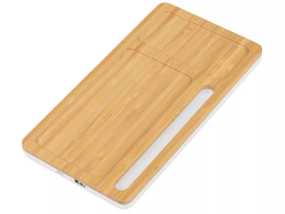 Органайзер Timber с функцией беспроводной зарядки — современный и стильный бизнес-подарок для поклонников экодизайна. Подойдет для хранения смартфона, ручки и визитных или клубных карт. Лаконичный дизайн с выраженной текстурой бамбука позволяет аксессуару гармонично вписаться практически в любой интерьер. В комплект входит кабель USB-C. Дополнительный плюс — выходной разъем USB.