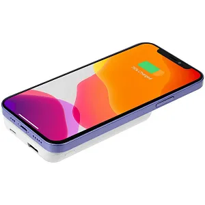 Компактный аккумулятор с функцией беспроводной зарядки и магнитной фиксацией к задней крышке iPhone 12/13.