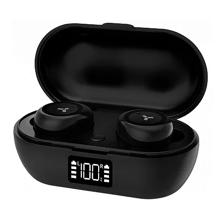 Обновленный флагман — наушники первой цены с полноценным дисплеем в четырех вариантах цвета. Дисплей на кейсе — незаменимая вещь. На нем вы сразу увидите оставшийся процент заряда литий-полимерной батареи. Кстати, блютуз-наушники работают 4 часа от одной зарядки — хватит на долгую дорогу. В режиме ожидания гаджет проживет 80 часов. За качество и громкость звучания отвечают сопротивление 32 Ом, по одному 10-миллиметровому драйверу в каждом наушнике и чувствительность динамика в 100 дБ. У этих наушников отличный звук, они легко заменяют гарнитуру. Каждый наушник весит менее 5 г, а вес кейса — почти 30 г. Кейс в четырех цветовых решениях (черный, розовый, синий, белый) позволяет каждому подобрать подходящие к его стилю наушники.