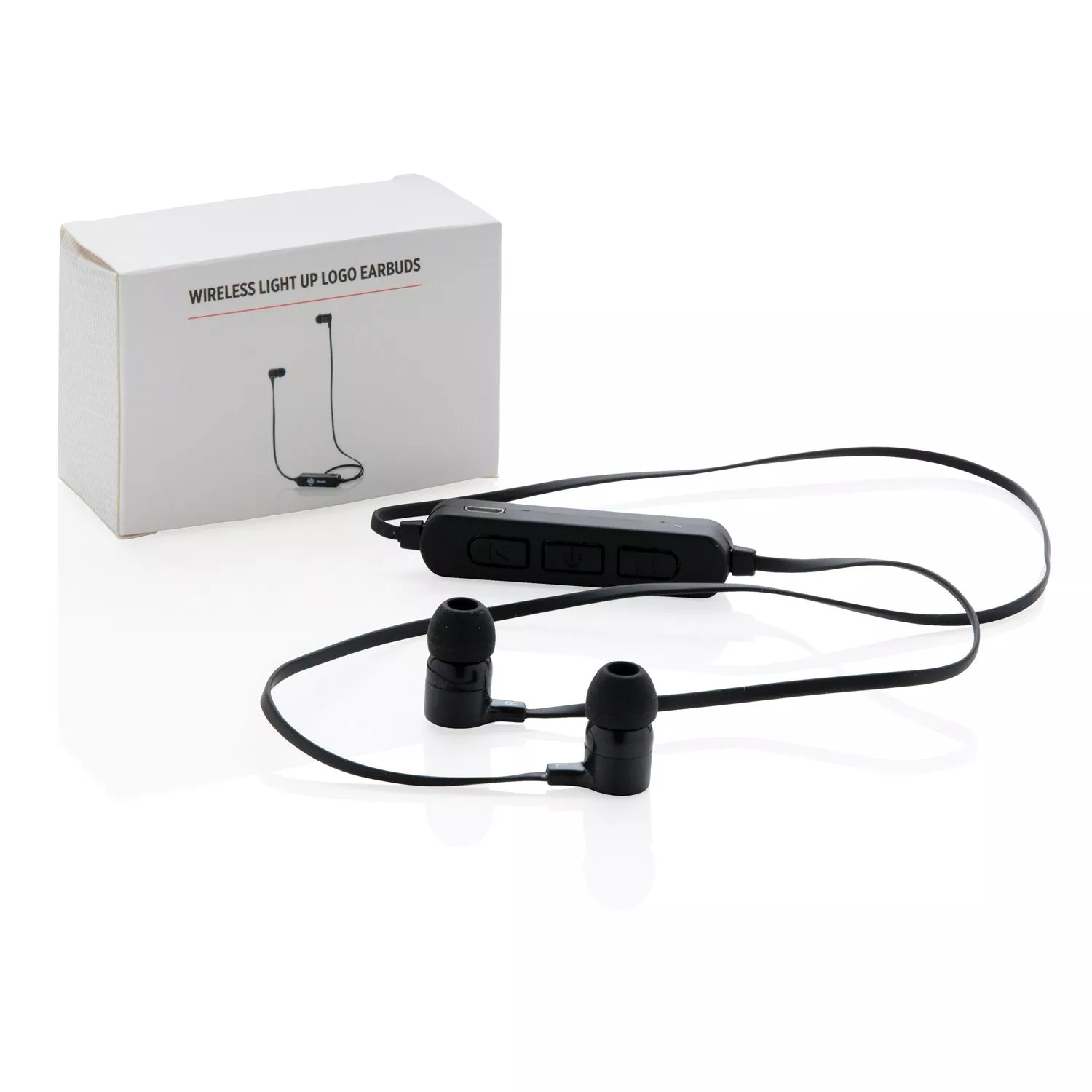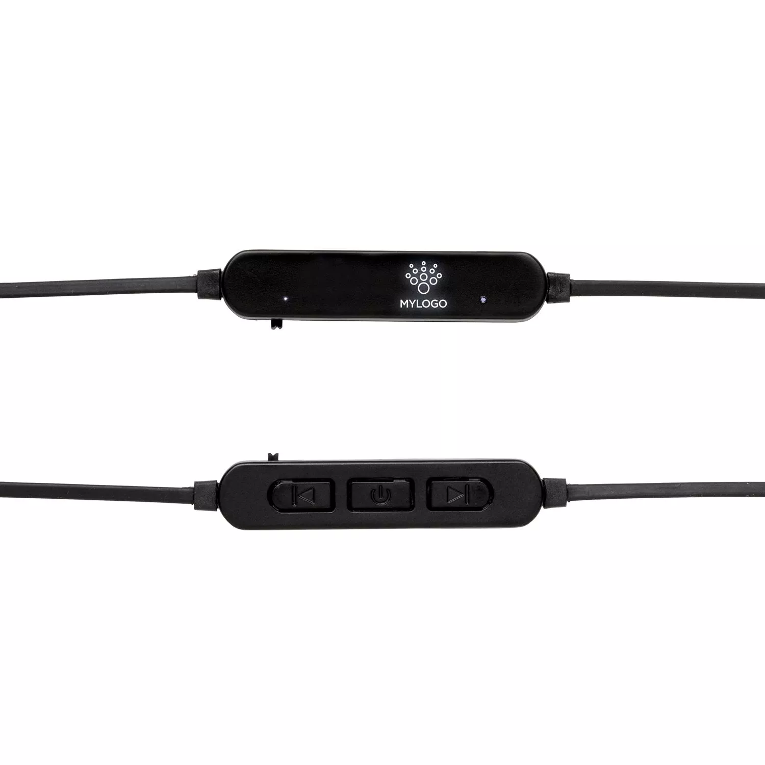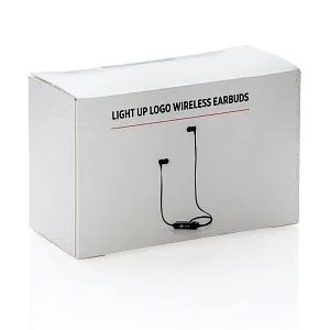 Беспроводные наушники, которые можно кастомизировать вашим подсвеченным логотипом, нанесенным на пульт управления. Bluetooth версии 4.2 для гладкого подключения с рабочего расстояния 10 метров. Встроенный аккумулятор емкостью 55 мАч, который позволяет слушать музыку до 3 часов на одном заряде, а перезарядка занимает 1,5 часа. Функции микрофона и приема входящих звонков.