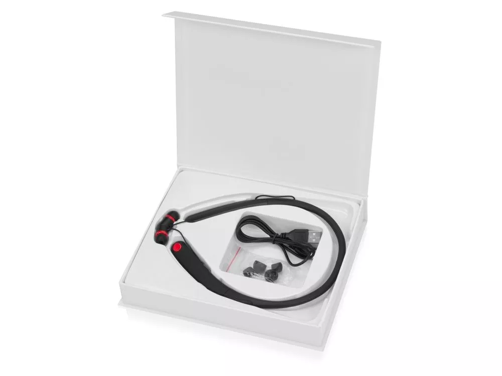 Беспроводная гарнитура Soundway может порадовать качественным звучанием на протяжении 8 часов без подзарядки. Гибкая дужка с покрытием soft-touch позволяет избежать любого дискомфорта даже при беге. В дужке находятся микрофон, современный аккумулятор, кнопка управления, защищенный разъем micro USB для зарядки и модуль вибро-оповещения, благодаря которому вы не пропустите ни один звонок. Когда наушники не используются их можно закрепить вокруг шеи при помощи магнитов. Гарнитура Soundway поставляется в подарочной упаковке на магнитах, в комплект входят кабель для зарядки, сменные насадки разных размеров и инструкция.