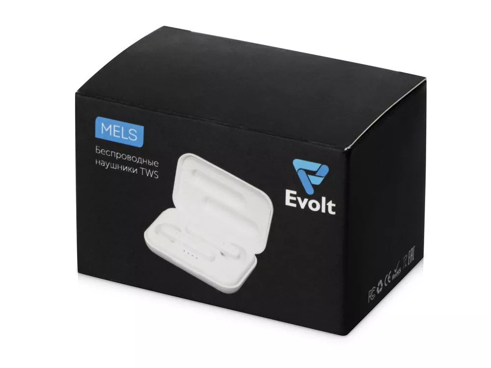 Беспроводные наушники Mels бренда Evolt обеспечивают до 16 часов суммарного воспроизведения музыки и работают на расстоянии до 10 метров от сопряженного с ним смартфона или иного гаджета. Зарядный чехол имеет разъем mini USB, внутри которого есть шкала заряда, состоящая из четырех делений. - время полной зарядки чехла – 1-2 часа - время воспроизведения – 4 часа (16 часов с чехлом) - лаконичный дизайн наушников и кейса - можно использовать в качестве гарнитуры - каждый наушник имеет кнопку управления, двойной щелчок на которую вызывает последний набранный номер, а одинарное нажатие – переключает на следующую дорожку Тампопечать (1 цвет (цветные изделия)) на данный товар осуществляется бесплатно. Оплачивается только настройка оборудования в размере 8200 рублей на весь тираж.