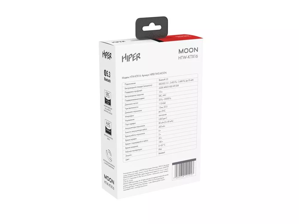 Беспроводные наушники TWS MOON привлекают узнаваемым дизайном и отличаются сбалансированным звуком. TWS MOON – это новинка от HIPER, привычная форма с улучшенными характеристиками. Звук у данной модели стал более объемный и качественный. От ярких высоких нот до глубоких и насыщенных басов - эти наушники доставят максимум удовольствия от прослушивания музыки. А благодаря усовершенствованному аккумулятору наушники работают без подзарядки гораздо дольше, чтобы пользователь мог наслаждаться любимыми треками без перерывов. Продуманный дизайн обеспечивает длительный комфорт. Наушники TWS MOON имеют эргономичную форму, так что их не хочется снимать в течении целого дня. В них комфортно работать и использовать для звонков благодаря улучшенному микрофону с функцией шумоподавления. Наушники TWS MOON имеют улучшенную версию беспроводного соединения Bluetooth 5.3. Корпус наушников защищен от пыли и влаги по стандарту IPX4, так что можно их не снимать во время непогоды. В комплект входит USB Type-C кабель для зарядки.