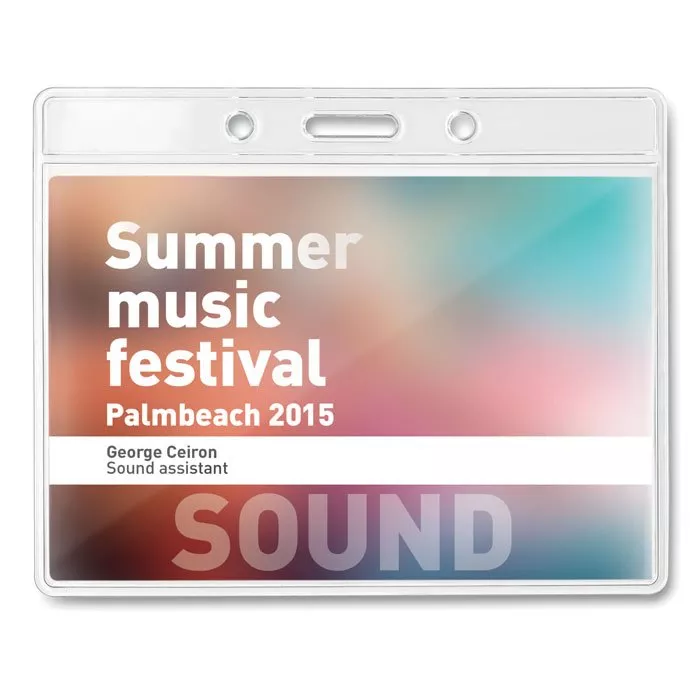 Прозрачный бейдж размером 10х8 см.