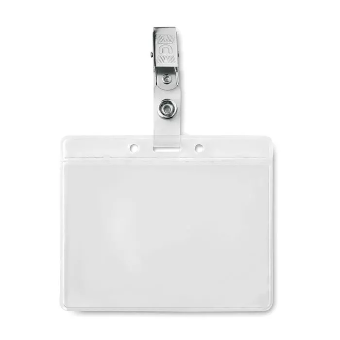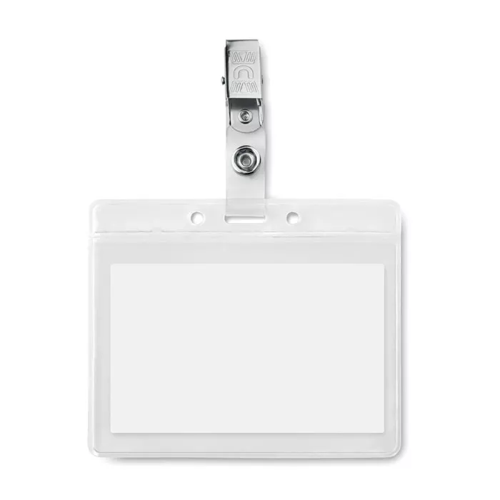 Бейдж холдер из ПВХ с металлической пряжкой.