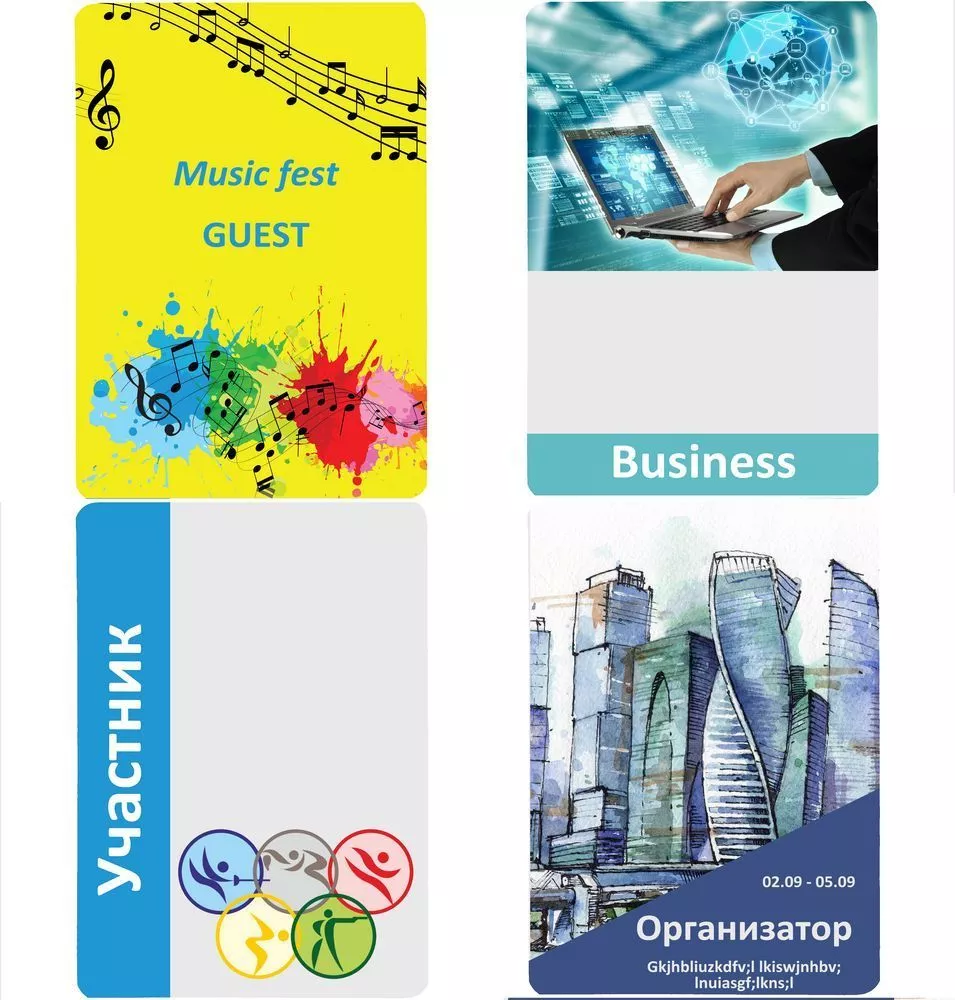 Яркое и четкое изображение печатается прямо на картоне с одной или двух сторон, а затем ламинируется — так бейдж становится более устойчивым к истиранию и воздействию влаги.