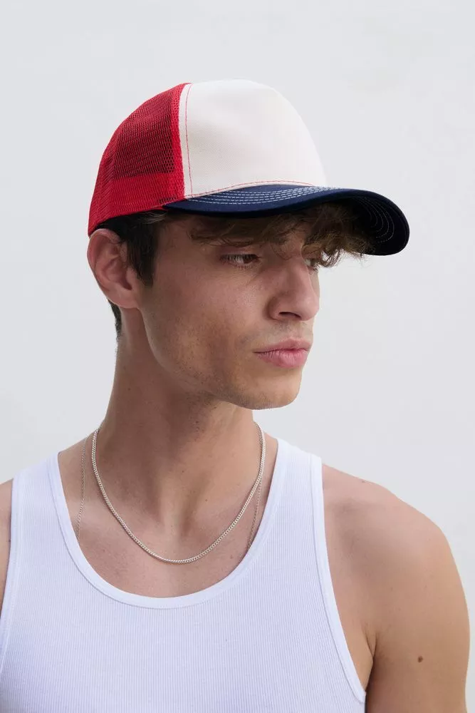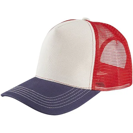 Эта спортивная модель с закругленным козырьком изготовлена из твила — плотной хлопковой ткани саржевого плетения (твила) и сетки из полиэстера.